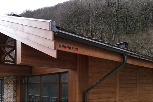 Водосточная система Grand Line PU 150/100 идеально подходит для среднего и крупного коттеджного строительства.