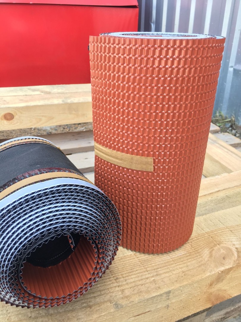 Применяется для отделки дымоходов, а также различных выступающих элементов и примыканий кровли к стенам. Гофрированная лента легко принимает любую форму - это удобно в работе с угловыми или труднодоступными местами на крыше. Лента сделана из гофрированного алюминия. На обратную сторону наносится очень долговечный и не теряющий своих свойств при высокой и низкой температуре бутил-каучуковый герметик. Такое покрытие легко взаимодействует с любой обезжиренной и чистой основой.